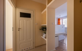 Przedpokój 4,5 m2 z wnęką na szafę i dodatkowym miejscem do przechowywania.